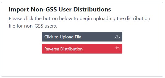 The button below the "Click to Upload File" button is the "reverse distribution" button. This button will open a modal that will allow you to reverse just the uploaded distributions from non-GSS users.